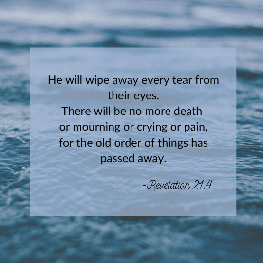 I pray for peace for you today, and for that beautiful time for you when your tears are wiped away by Him.