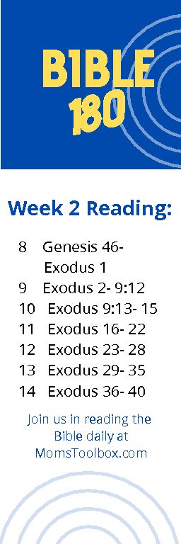 This week our reading will be about just that: waiting and waiting and waiting… then we’ve got some plagues, then go time, then a new life, how to live and even the concept of delegation (I love that one!). There is a LOT of detail in there and lots of good stuff… and lots of hard stuff to follow (which makes me oh-so-thankful for my Savior!)
